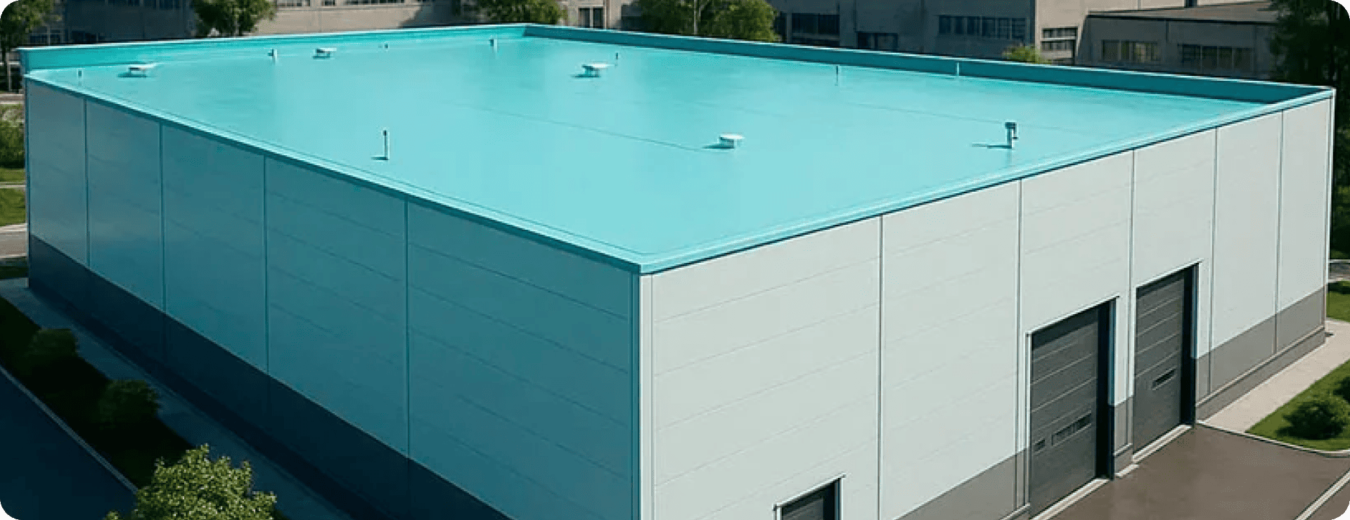 ПВХ-мембраны LOGICROOF получили широкое распространение при строительстве самых разных объектов – жилых комплексов, объектов культуры, логистических центров, промышленных зданий и многих других. Одним из важных преимуществ мембран LOGICROOF V-RP является широкая цветовая палитра, которая помогает придать кровле любого объекта индивидуальность и реализовать самые необычные дизайнерские решения. Так, с кровлей синего цвета был построен легкоатлетический манеж в г. Йошкар-Оле. Зеленая крыша, напоминающая свежескошенный газон, выделяет Центр большого тенниса в Рязани. Красная кровля аэропорта Баландино в Челябинской области идеально соответствует футуристичному дизайну всего здания. Кроме того, цветные мембраны позволяют создать на кровле логотип компании, который будет виден с высоты птичьего полета.