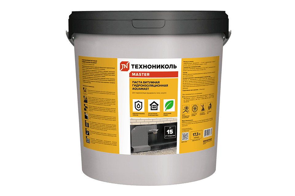 Гидроизоляция битумная универсальная AquaMast – это готовая к применению битумная эмульсионная мастика холодного нанесения, которая модифицирована СБС полимером.