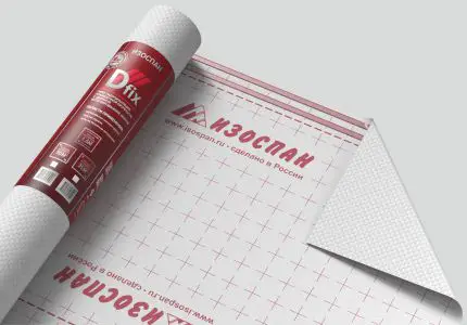 Изоспан D fix — двухслойный материал, выполненный из высокопрочного тканого полипропиленового полотна и полипропиленовой пленки. На полотно материала нанесены две клейкие ленты для герметизации нахлёстов.