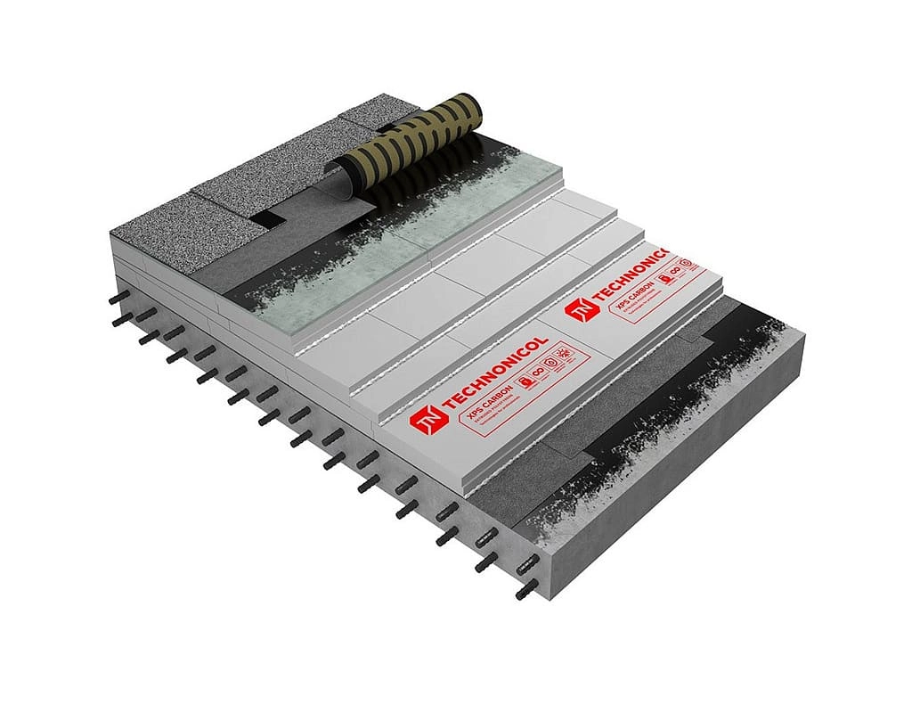 Сэндвич ТЕХНОНИКОЛЬ Ц-XPS CARBON обладает повышенной прочностью и вандалоустойчивостью. За счёт малого веса экструзионного пенополистирола материал не утяжеляет конструкции, в которых применяется. Прочность на сжатие теплоизоляционного слоя при 10% относительной деформации составляет не менее 150 кПа. Это означает, что материал способен воспринимать нагрузки в период монтажа гидроизоляции и в период эксплуатации кровли. Теплоизоляция сохраняет форму и геометрию даже при воздействии значительных нагрузок.