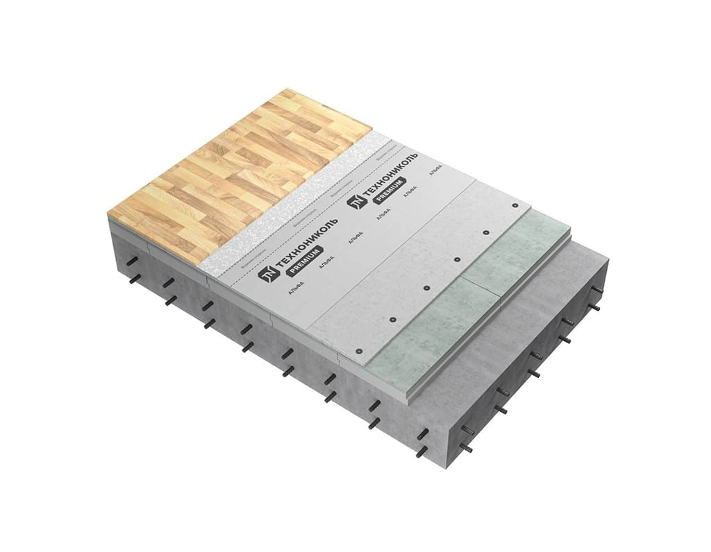Полы утепляются по «сухой» технологии, а защитный слой из высокопрочной цементной стяжки даёт возможность укладывать распределительную сборную стяжку поверх плит теплоизоляции из одного слоя, а не из двух.