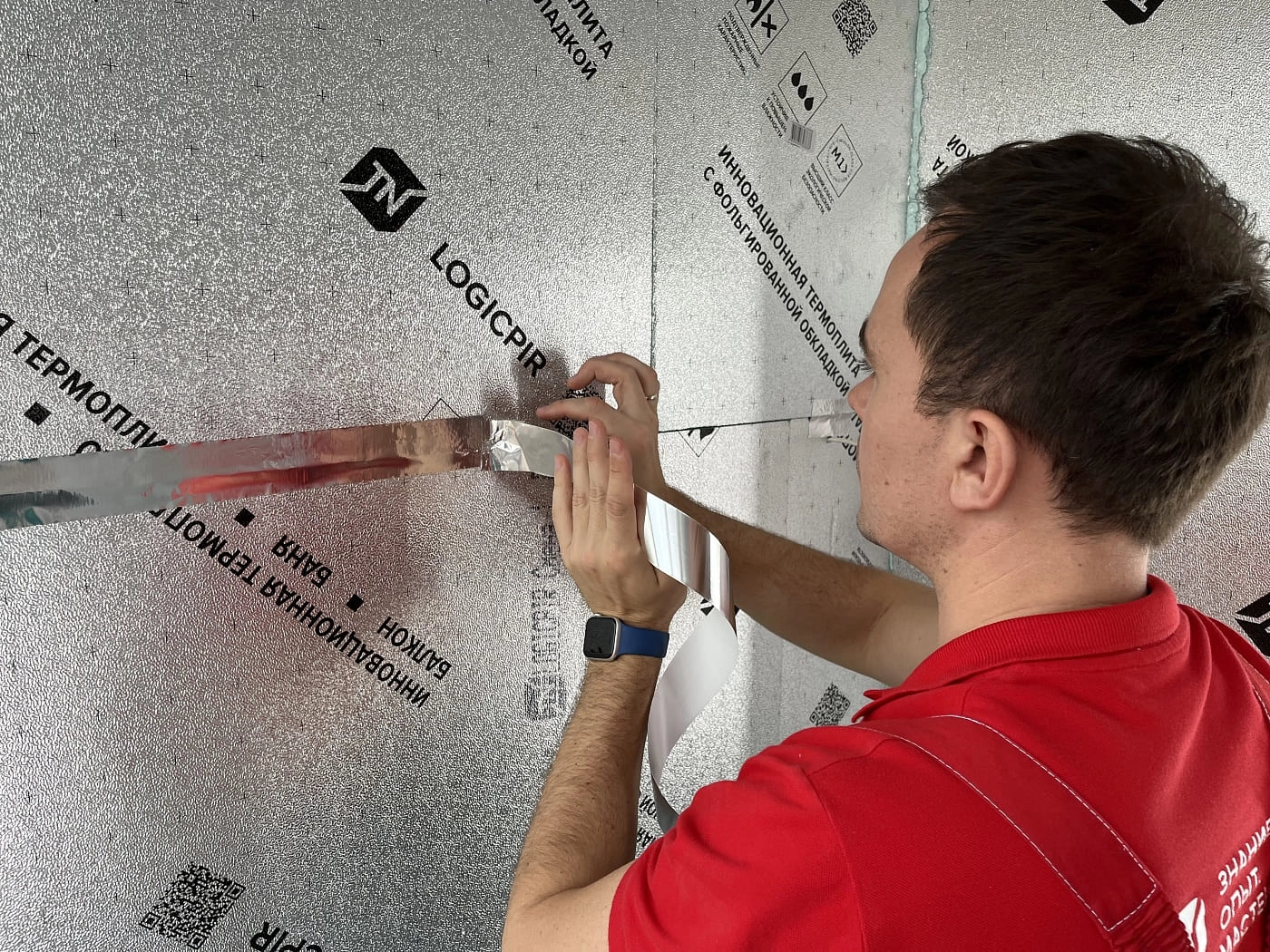 Самоклеящаяся алюминиевая лента LOGICPIR для герметизации стыков между плитами из жесткого пенополиуретана.