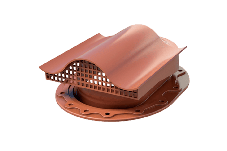 Применяется для удаления избыточной подкровельной влаги на кровлях, где отсутствует конек крыши. Устанавливается на скатные кровли с уклоном от 5° с плоской поверхностью (гибкая черепица, металлическая фальцевая кровля, плоские асбестоцементные листы) непосредственно на кровельное покрытие, то есть на уже смонтированную кровлю. Имеет на нижней поверхности уплотнитель из специальной долгостареющей резины, который обеспечивает при фиксации надежную герметичность соединения с кровлей.Вентилируемая площадь подкровельного пространства составляет ~ 10 м².