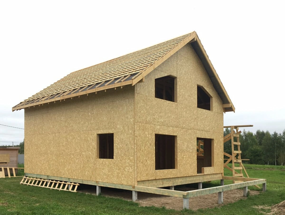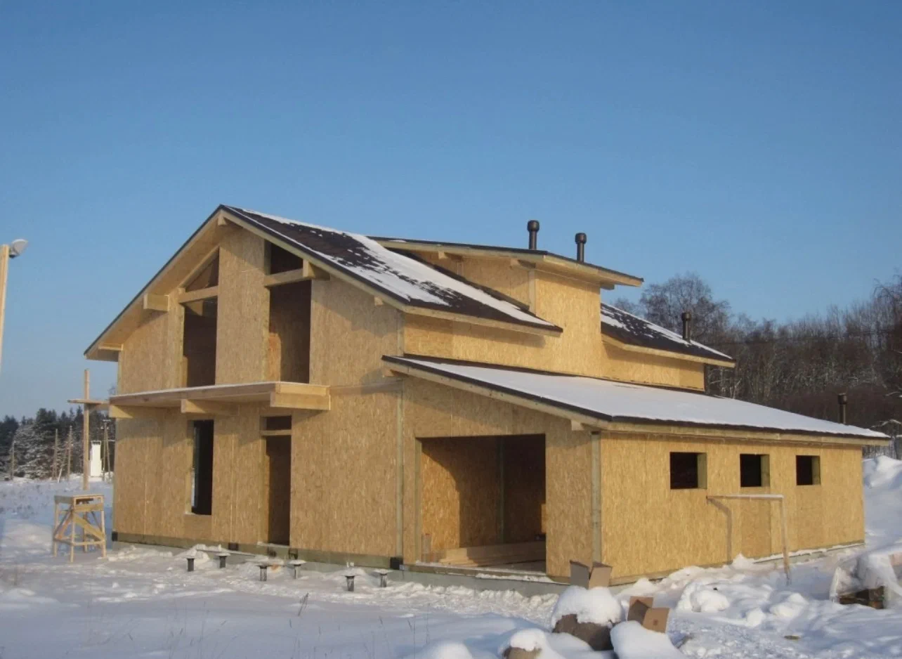 • эти плиты применяются в производстве SIP-панелей, в которых играют роль наружных слоев, между которыми находится слой пенополистирола;
